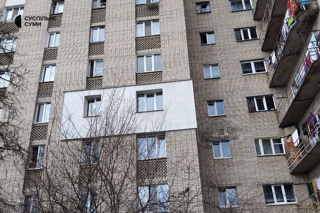 В результате массированной атаки БПЛА в Сумской громаде повреждены 2 многоквартирных дома.