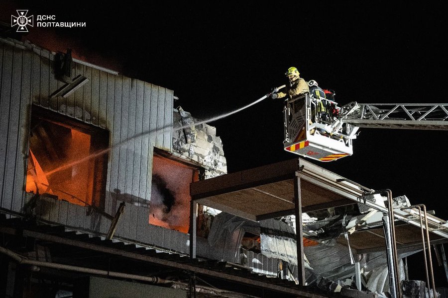 "Есть повреждения в Полтавской громаде: загорелись складские помещения, админздания и резервный трансформатор на шести локациях", — уточнили в ГСЧС.