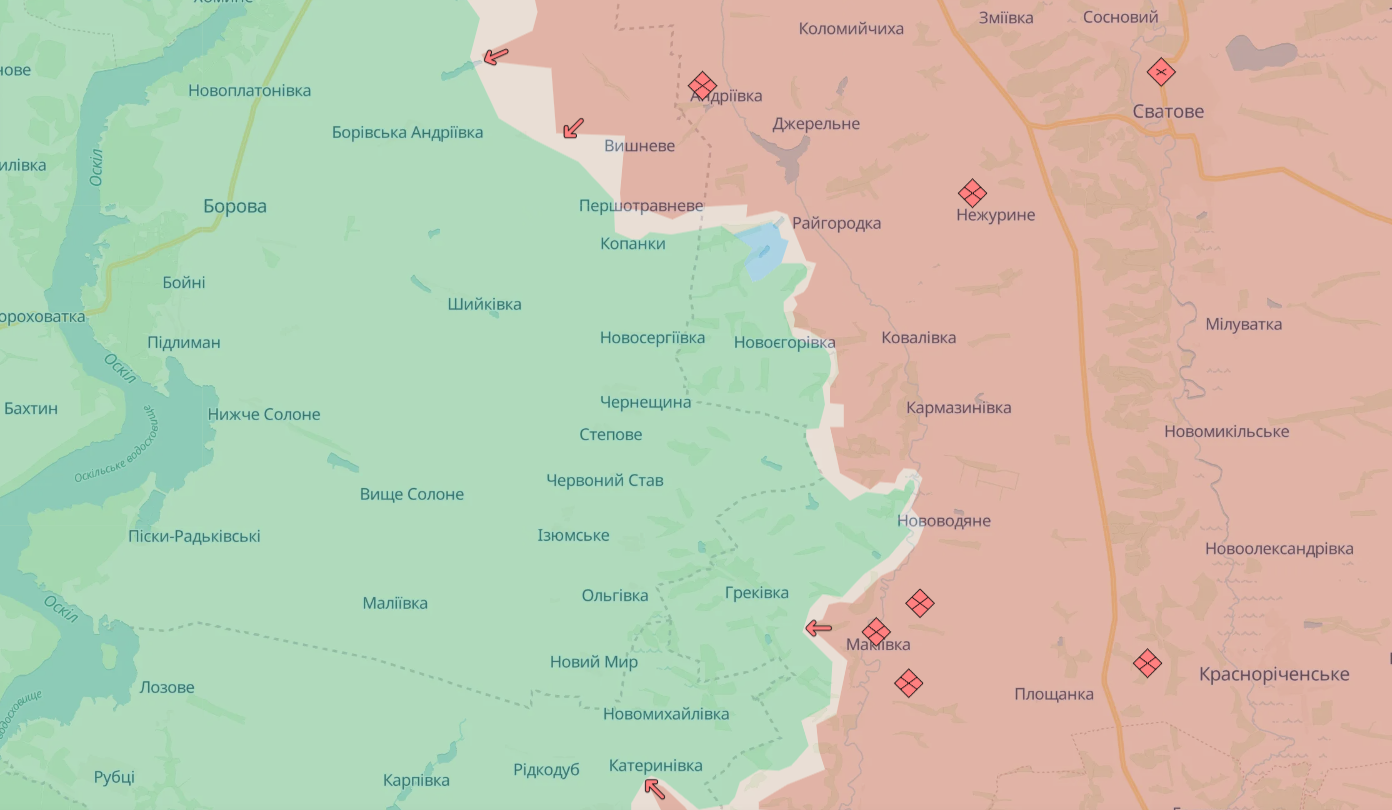 Сообщается, что согласно опубликованным 5 апреля геолокационным кадрам Силы обороны Украины на днях продвинулись на юго-восток от поселка Боровая Харьковской области — до территории на западе от села Макеевка в Луганской области.