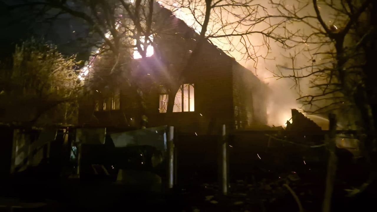 В селе Хотимля Чугуевского района в результате сброса неустановленного взрывного устройства с БпЛА возникло возгорание двухэтажного жилого частного дома.