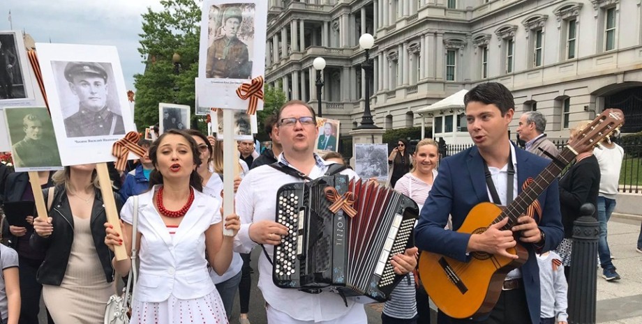 Акция "Бессмертный полк", которая ежегодно в начале мая проходит в самой РФ и в ряде стран за ее пределами, считаются пропагандистскими мероприятиями, которые спонсируются Кремлем. В Вашингтоне ее не проводили с начала полномасштабной агрессии России против Украины.