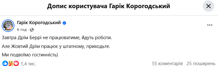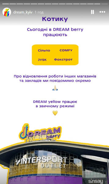 По информации совладельца Гарика Корогодского, 4 мая часть ТРЦ, Dream berry, не будет работать.