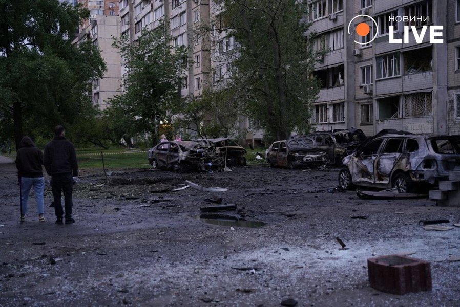 В Киевской городской государственной администрации уточнили, что последствия атаки вражеских БпЛА и падения обломков сбитых воздушных целей зафиксированы в трех районах Киева. В частности, в Оболонском районе произошел пожар на верхних этажах одной из многоэтажек с распространением на кровлю, загорелись 7 автомобилей. Кроме этого, обломки повредили здание детского сада.