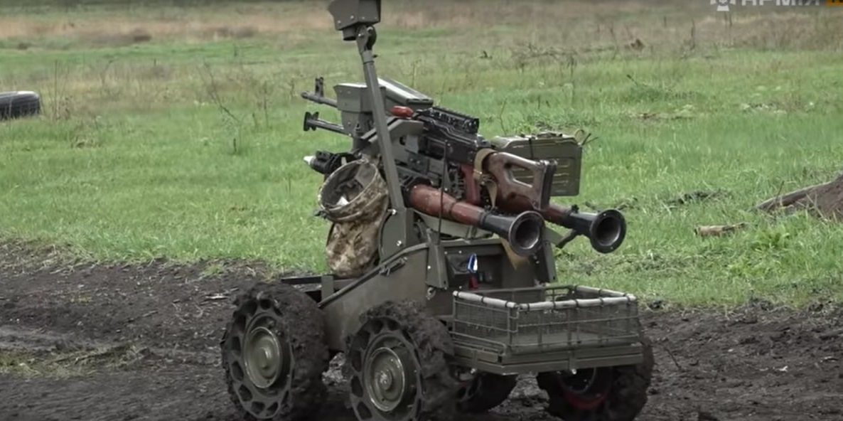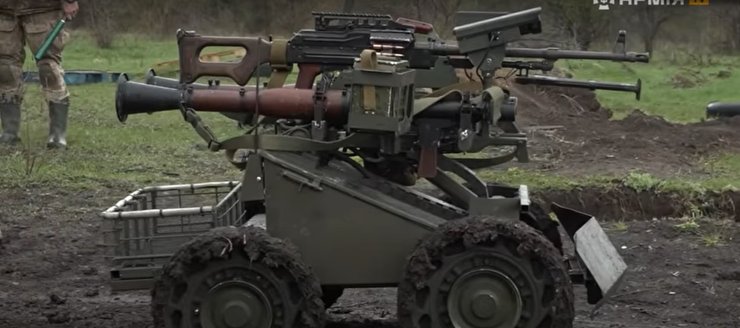 Этот наземный дрон имеет на вооружении два противотанковых гранатомета и крупнокалиберный пулемет.