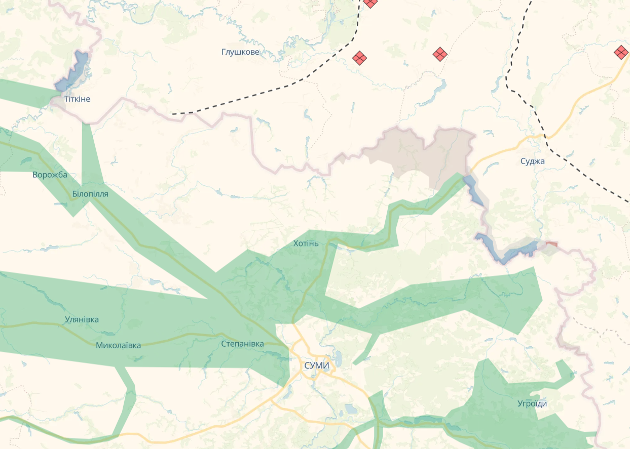 Украинские военные сообщают об активизации наступления РФ на Сумском направлении. Оккупанты предпринимают попытки зайти на территорию Сумской области пешими группами по 8-10 человек.