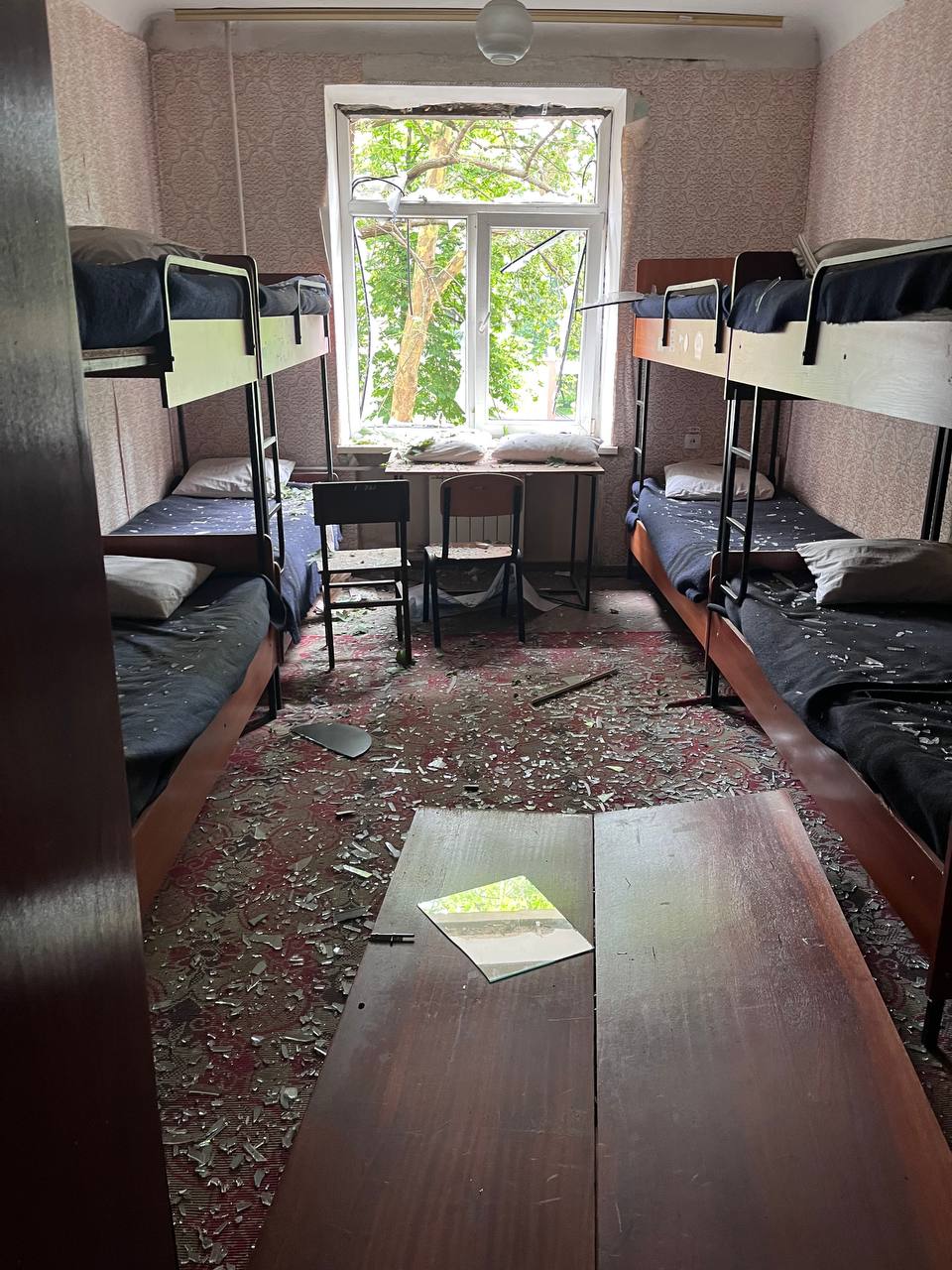 Как сообщил ректор вуза Владимир Бугров в интервью Еспресо.TV, удар вызвал взрыв газа, в результате чего здание оказалось частично разрушено и временно непригодно для проживания. По его словам, около полуночи фрагмент сбитого БПЛА упал у стены общежития, повредив газовую трубу.