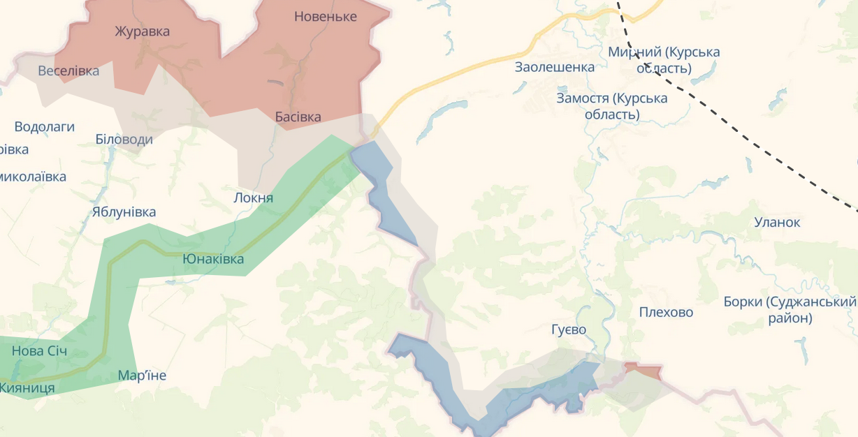 На карте проекта DeepState села Локня и Юнаковка обозначены подконтрольными Силам обороны Украины.