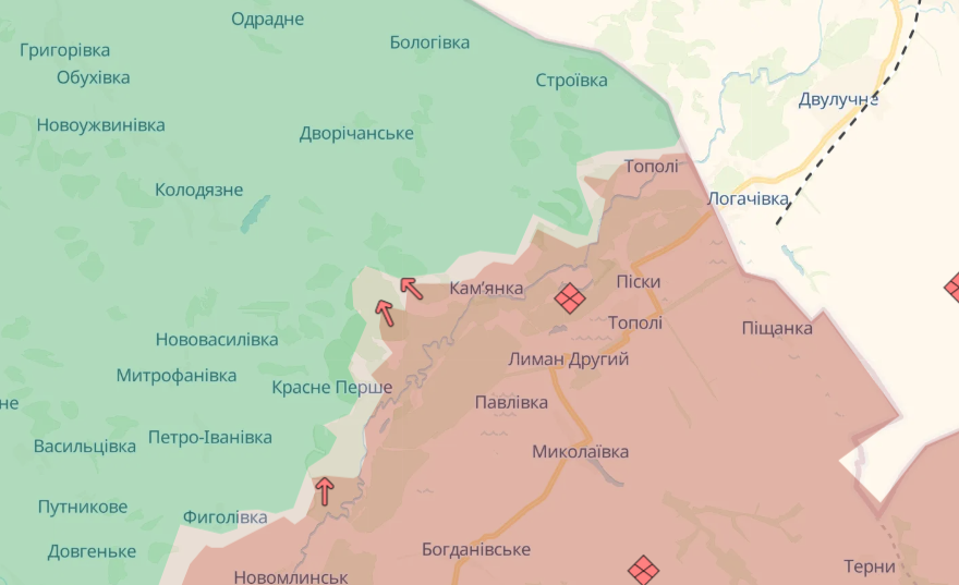 Успехи оккупантов подтверждены возле села Беловоды Сумской области и Каменки Харьковской области. Кроме этого, продвижения у врага имеются и в Котляровке Донецкой области.