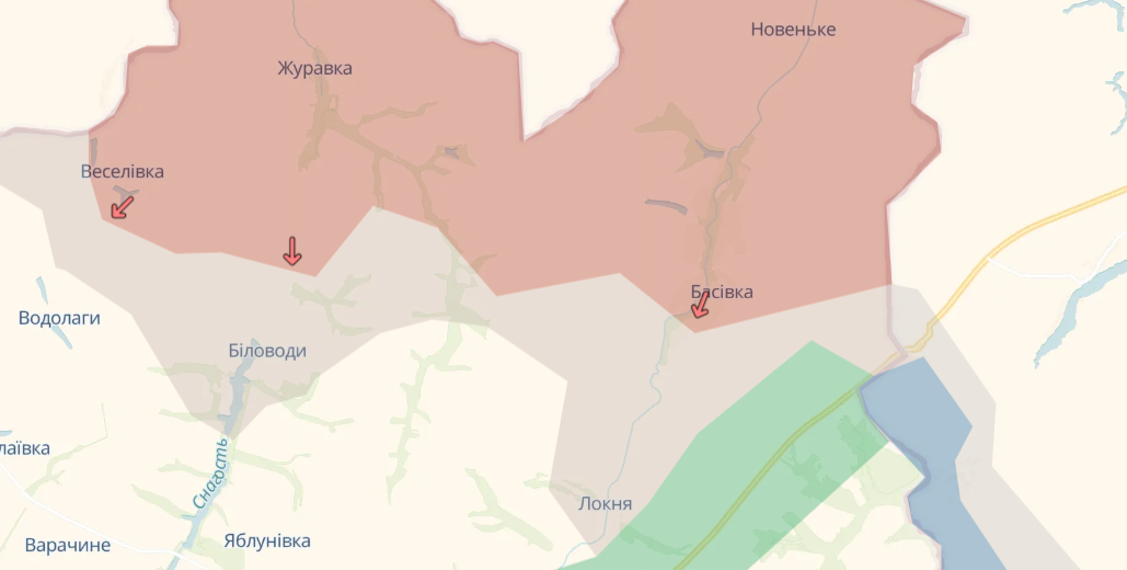 Беловоды — полностью под контролем ВС РФ и сейчас будут попытки зайти в Яблоновку. Локня тоже оккупирована, россияне закрепляются в домах южной части села.
