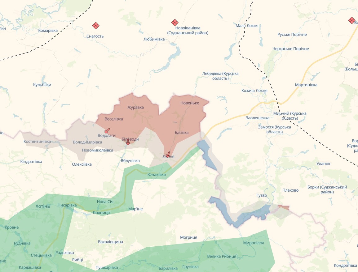 Динамика боев на Курском направлении свидетельствует об активизации российских сил и относительно стремительном броске на трех участках линии боевого соприкосновения в Сумской области. Это подтверждают картографические данные deepstatemap.live.