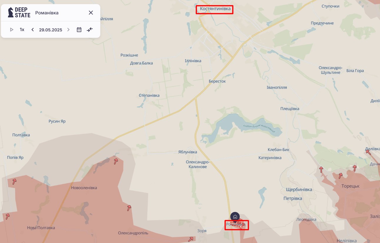 DeepState показали наступление РФ в Романовке и угрозу для Константиновки 30 мая
