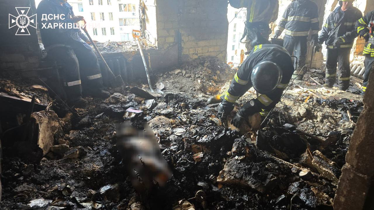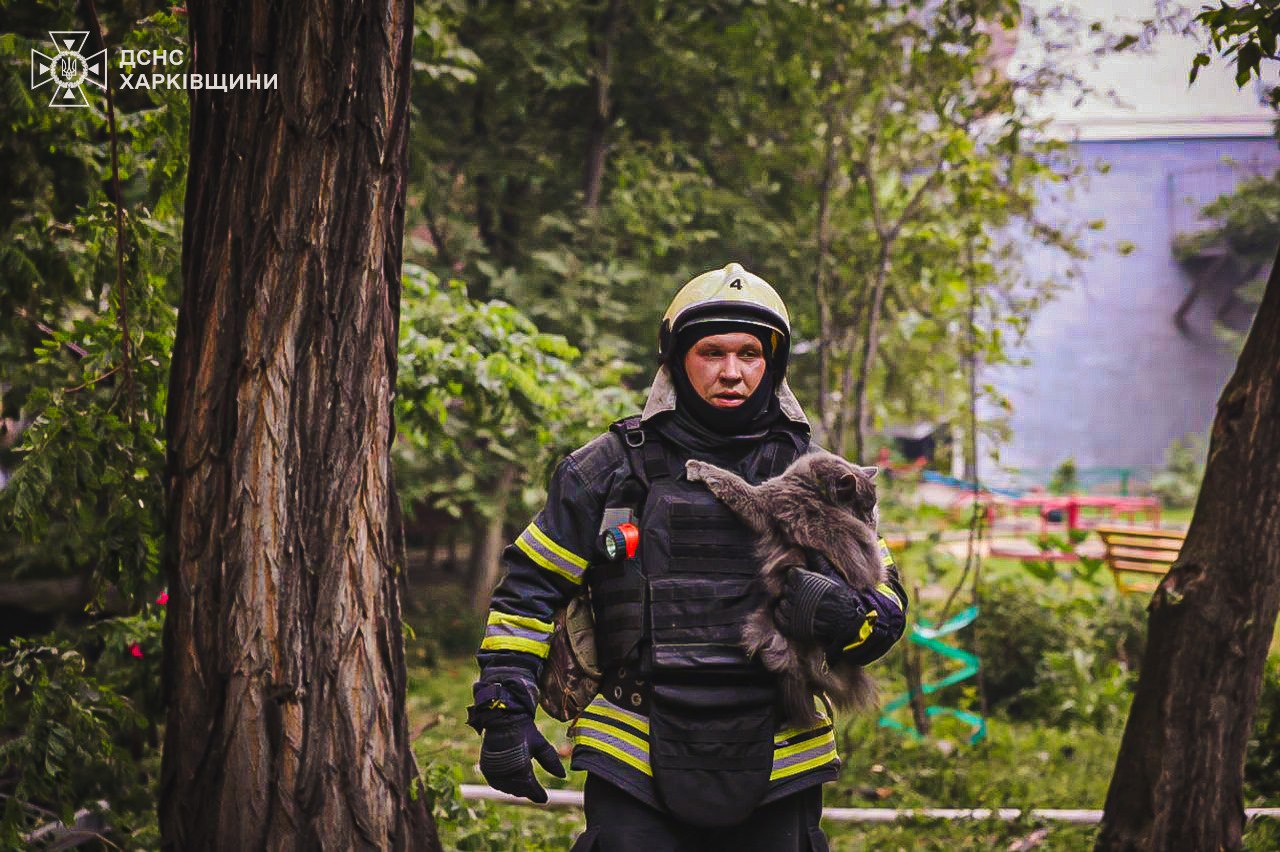 Вооруженные силы Российской Федерации обстреляли Харьков 54 средствами поражения и убили трех человек. Спасатели потушили пожар в пострадавших квартирах и показали, что все вещи в помещениях превратились в пепел. Людей выводили на улицу, оказывали психологическую и медицинскую помощь. Также спасали животных, свидетельствуют кадры Государственной службы чрезвычайных ситуаций.