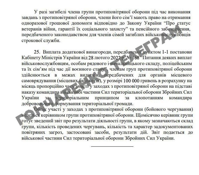 Кабинет министров Украины согласовал привлечение к работе противовоздушной обороны членов военизированных формирований и добровольческих формирований территориальных громад. Добровольцы с соответствующими навыками смогут сбивать российские "Шахеды" и получать за это денежное обеспечение до 100 000 гривен в месяц.