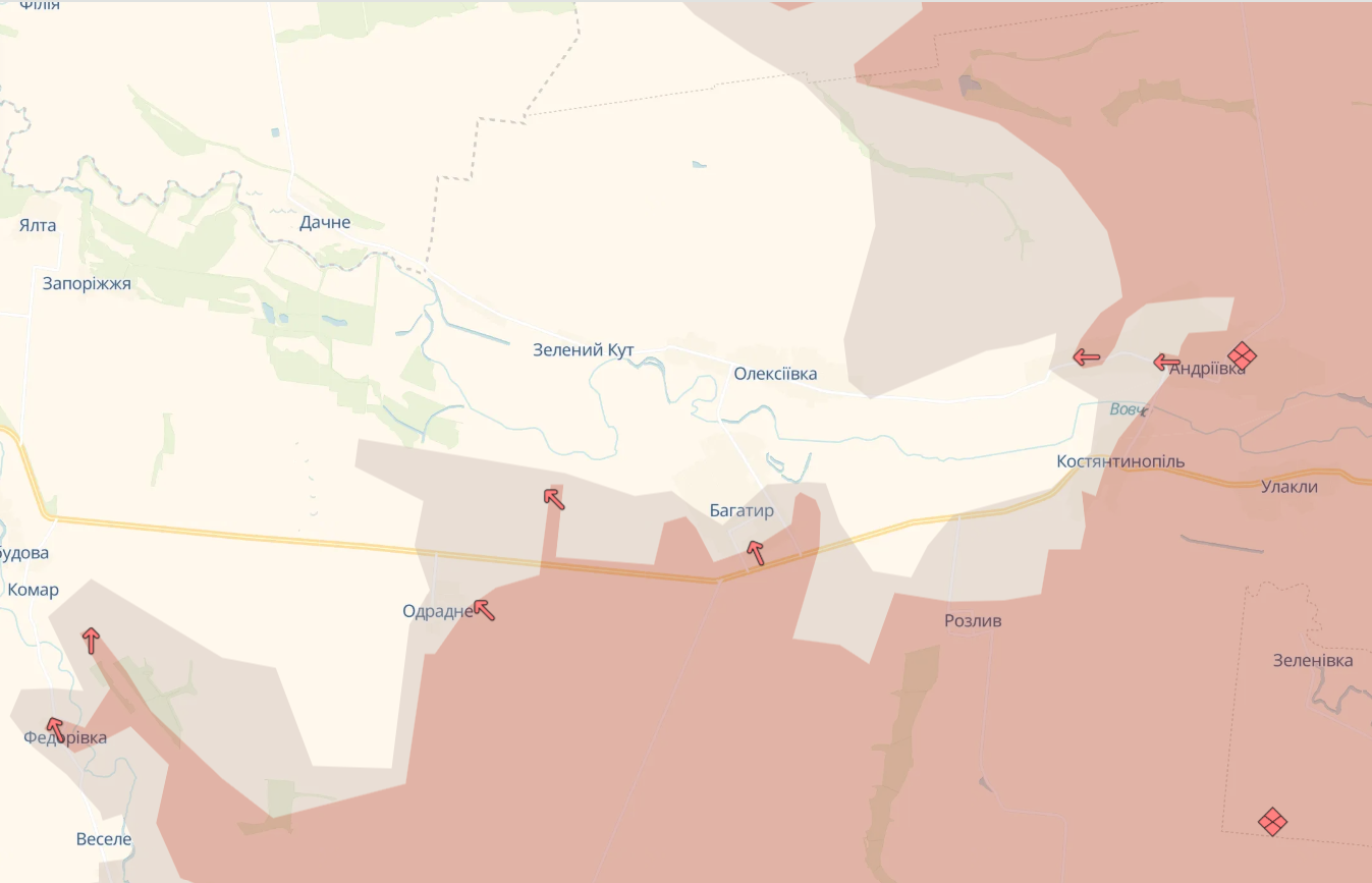 3 июня в DeepState рассказывали, что ВС РФ наступают в Донецкой области и продвинулись в районе Богатыря. Аналитики сообщали, что оккупанты зашли на территории к юго-востоку от Отрадного и к западу от Андреевки, таким образом приблизившись к Алексеевке.