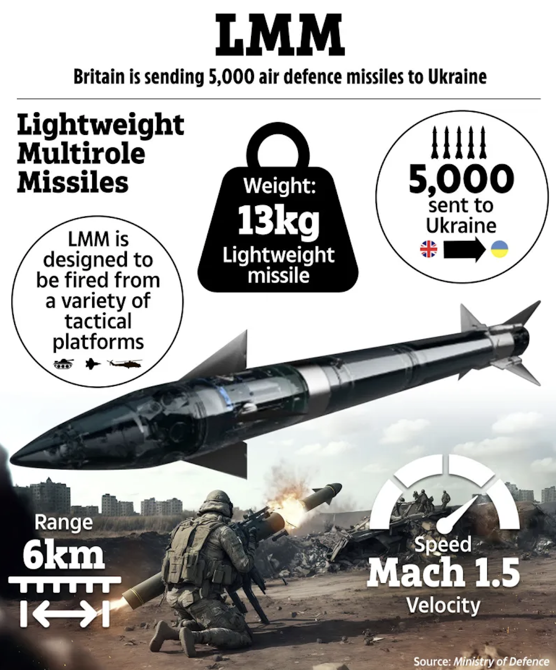 В Defence Express вспомнили, что в начале марте Минобороны объявляло о финансировании Великобританией поставки сразу 5000 ракет Marlet, также известных как LMM — Lightweight Multirole Missile. Комплексы Rapid Ranger и ракеты к ним производит компания Thales UK в Белфасте, однако в этом случае есть перспектива локализации производства. Сообщалось, что Великобритания намерена передать Украине технологии и создать украинские производственные мощности.