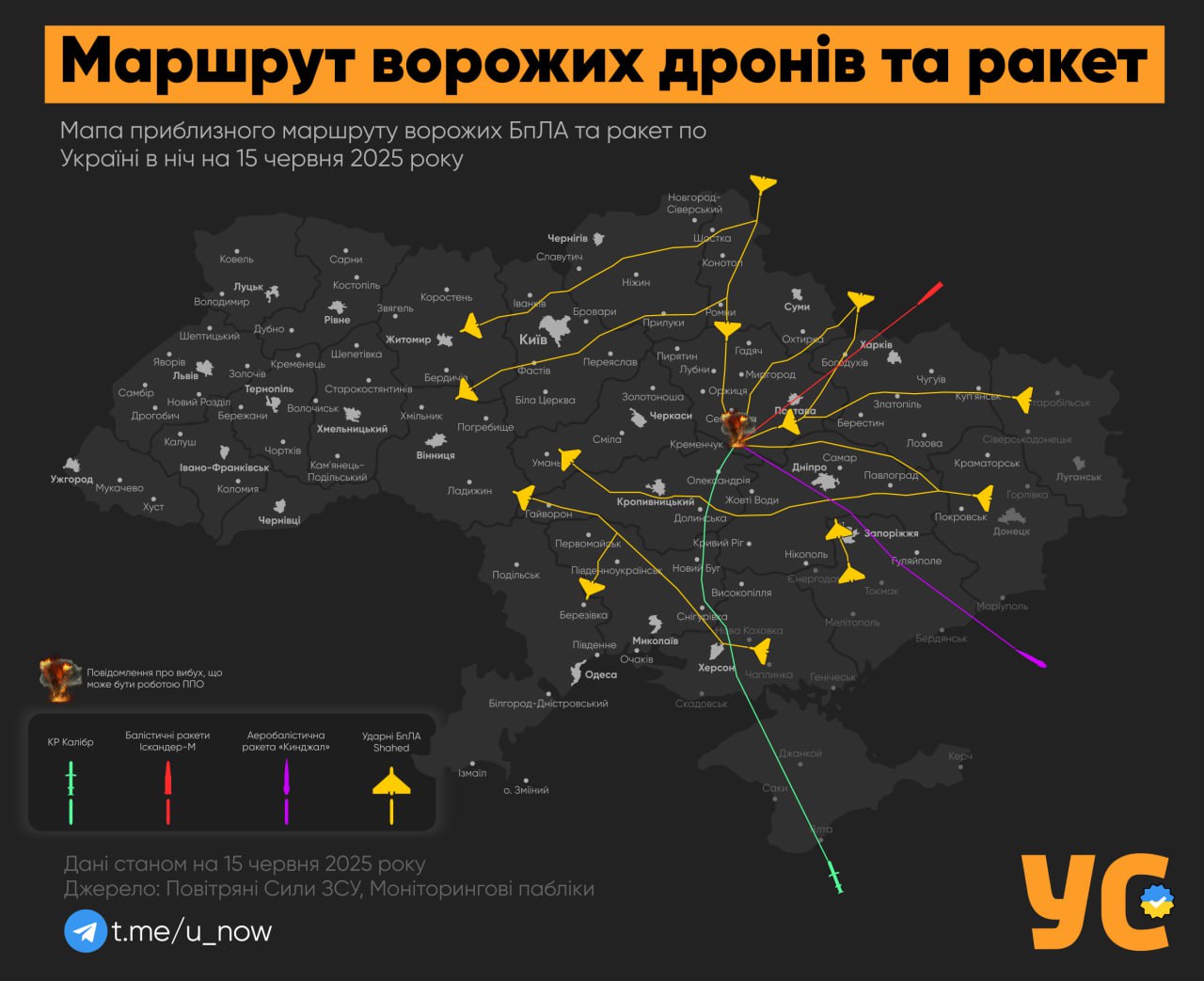 В воскресенье ночью, 15 июня, россияне провели массированную комбинированную атаку с использованием ракет и беспилотников по Полтавщине. Большинство вражеских целей было уничтожено силами и средствами противовоздушной обороны, отметил глава Полтавской областной военной администрации Владимир Когут.