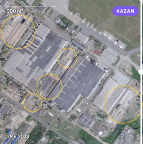 Россия увеличивает производство собственных самолетов на авиационном заводе в Казани, сообщают журналисты. Согласно спутниковым фото, РФ подготовила почти 19 тыс. кв.м ангаров, а полноценно планирует завершить процесс ввода в эксплуатацию этих площадей не ранее конца 2026 года.