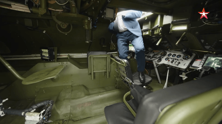 Кроме этого был обновлен интерьер и установлена современная электроника. В частности, по периметру машины установили обзорные камеры, изображение с которых вывели экраны механика-водителя.