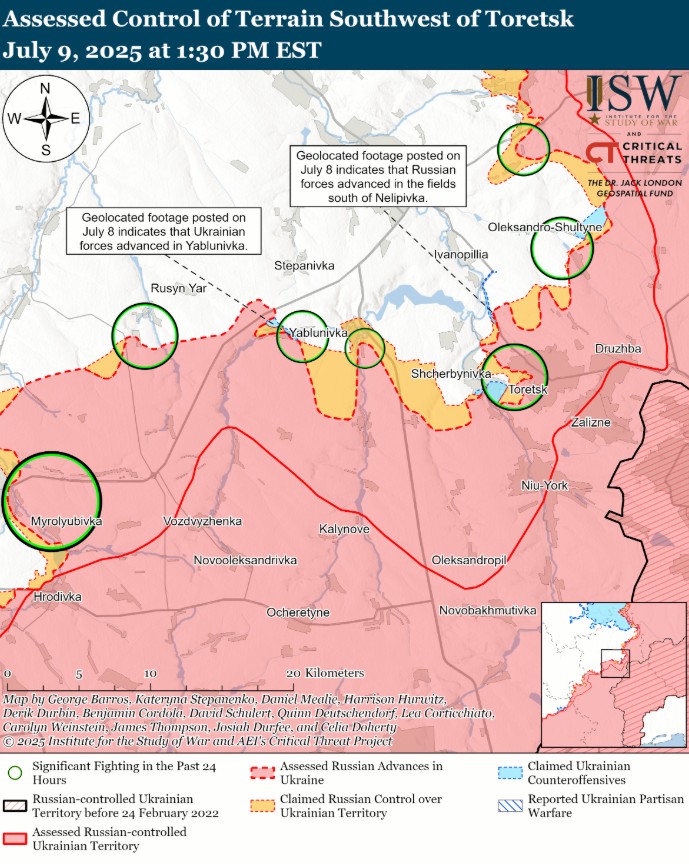 ВС РФ наступают от Торецка и Константиновки, свидетельствует карта ISW 9 июля