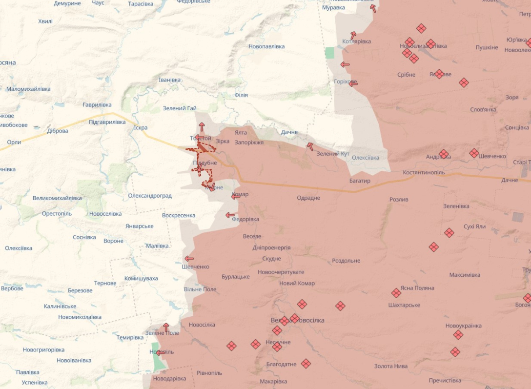 Изменилась ситуация и на Новопавловском направлении, где согласно данным аналитиков, противник предпринимает попытки вклиниться в оборону украинских защитников на участках у Поддубного и Мирного. За минувшие сутки россияне продолжили наступательные действия вдоль трассы Н15, которая ведет в сторону Днепропетровской области.