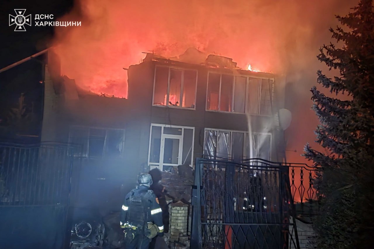 В г. Чугуев горели частная хозяйственная постройка и конструктивные элементы разрушенного взрывом дома. Пострадали 3 человека.