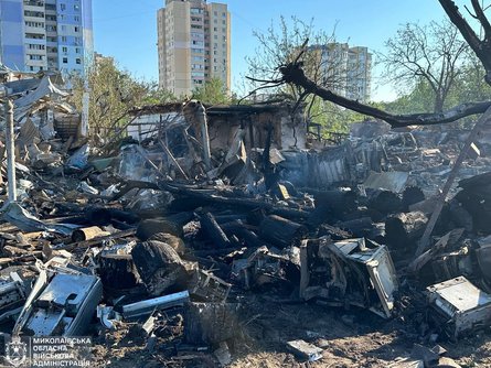 В результате ракетного удара по областному центру были разрушены три частных дома, возникли пожары. Еще 23 частных дома, 12 многоквартирных домов, шесть автомобилей, отделение почтовой связи, магазин стройматериалов получили повреждения, сообщил глава Николаевской ОВА Виталий Ким.