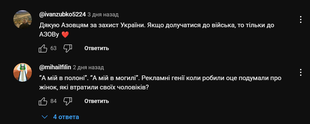 "А мой в Азове": как украинцы отреагировали на другие подобные рекламные ролики бригады