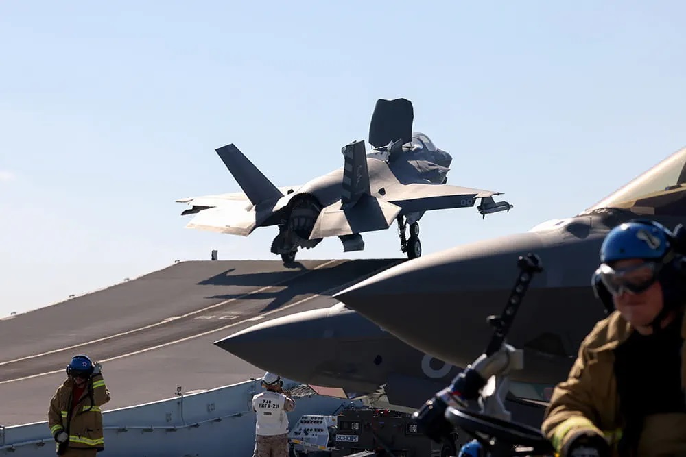 Он рассказал, что на летной палубе "Принца Уэльского" стоит целый ряд истребителей F-35, известные своими возможностями "короткого взлета и вертикальной посадки", которые могут поражать цели на суше и на море, используя целый арсенал огневой мощи, в который входят ракеты Sidewinder для воздушного боя и 100-килограммовые бомбы Spear для наземных атак.