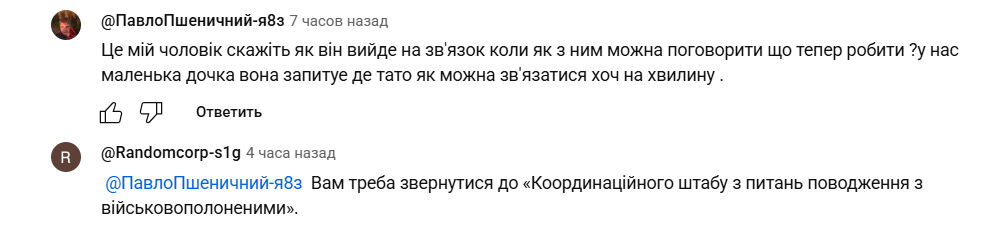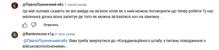 В комментарии пришла и женщина, которая назвалась женой пленного. Она написала с аккаунта Павла: