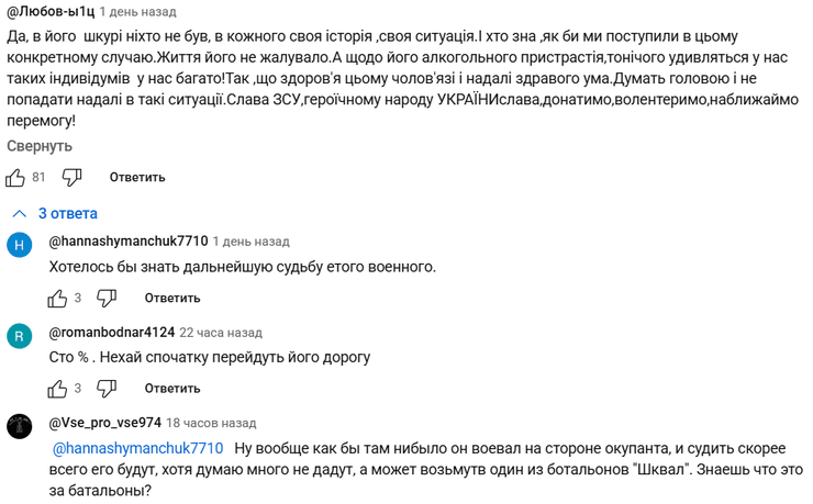 В YouTube под интервью пленного журналистке hromadske всего за день после публикации набралось более 450 комментариев. Среди тех, кто отписался, есть многие, которые защищают Павла, другие же рассказывают неожиданные вещи о нем. Фокус, не выражая своего субъективного мнения, предлагает ознакомиться с тем, что пишут после просмотра видео.