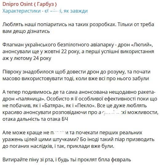 "Но может лучше не п*и и подождать первых реальных поражений целей этими штучками? Потому что иногда такой пиар приводит к плохим последствиям, и да, примеры уже были", — написал OSINTер.
