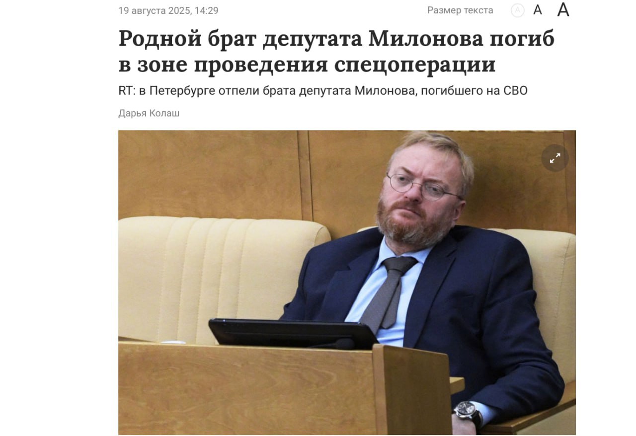Виталий Милонов на своем Telegram-канале смерть брата никак не прокомментировал. Зато немало времени он уделил тому, как Дональд Трамп относится к украинскому президенту Владимиру Зеленскому, а также критиковал костюм последнего во время встречи в Белом доме 18 августа.