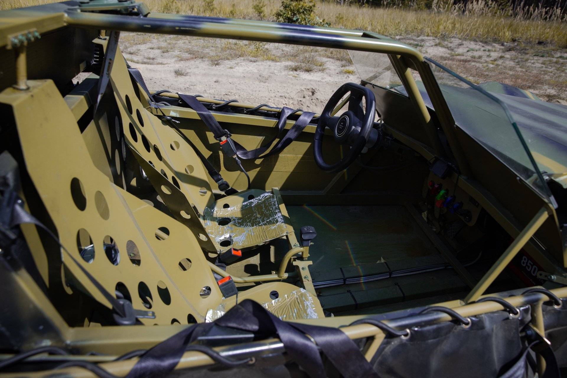 Емкость топливного бака машины составляет 38 литров. При расходе 12 литров на 100 км запас хода по пересеченной местности составляет более 300 км, чего достаточно для выполнения фронтовых задач. Впрочем, как пояснил инженер Владимир Садык, багги преимущественно работают на фронте на расстоянии до 50 км. Но запас топлива необходим для возвращения на случай, если бак в бою получит повреждения.