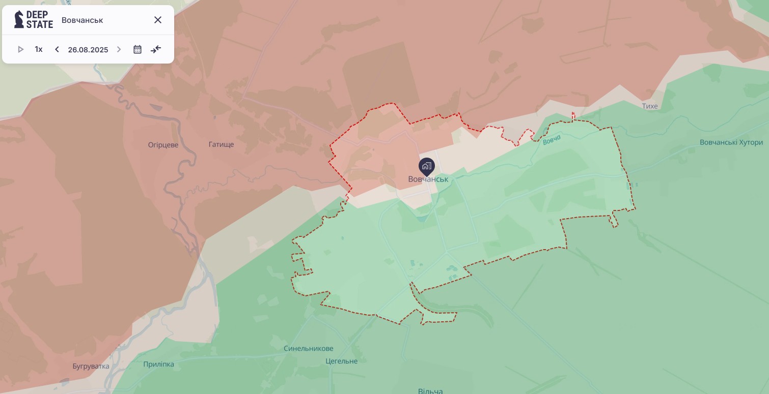 На карте боевых действий проекта DeepState можно увидеть, что по состоянию на 27 августа город оккупирован, ориентировочно, на одну шестую. При этом таймлайн показывает, бойцы ВСУ с ноября 2024 по апрель 2025 удерживали линию боев и враг не продвинулся вперед.