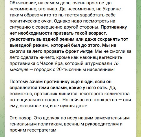 По словам Гиркина, этот шаг свидетельствует о том, что Вооруженные силы Украины не испытывают острой нехватки в живой силе и справляются со своими задачами теми силами, которыми располагают.