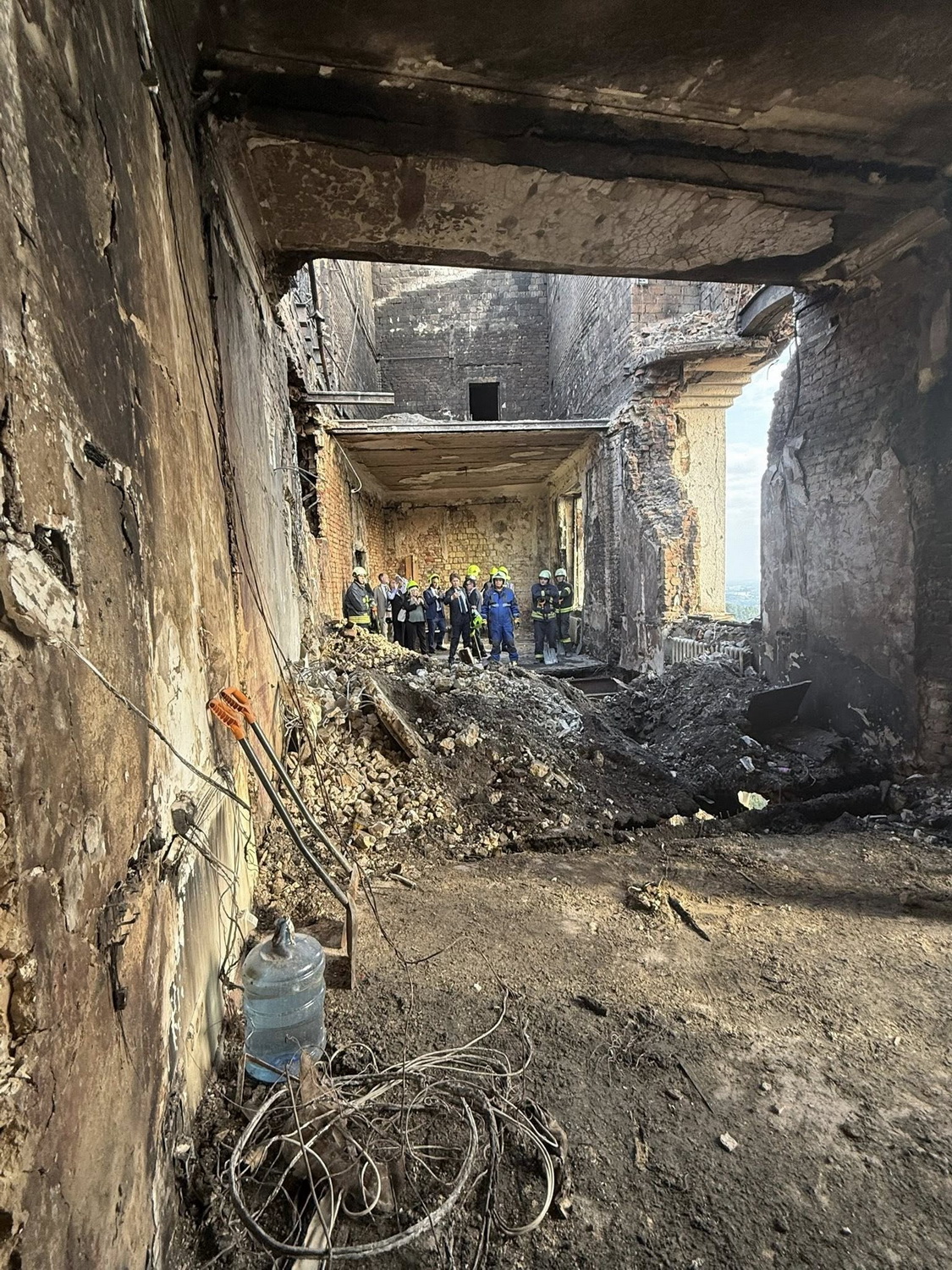 Матернова показала фото изнутри здания правительства. На фото — почерневшие стены, выгоревшая мебель, дыры в потолке. Выяснилось, что Кабмин чудом устоял: это произошло благодаря тому, что ракета "Искандер" ВС РФ не сдетонировала. Если бы детонация состоялась, сооружение разрушило бы полностью, указано в заметке. Между тем украинские пожарные удержали огонь, который выжег три этажа, но не прошел дальше, подчеркнула дипломат.