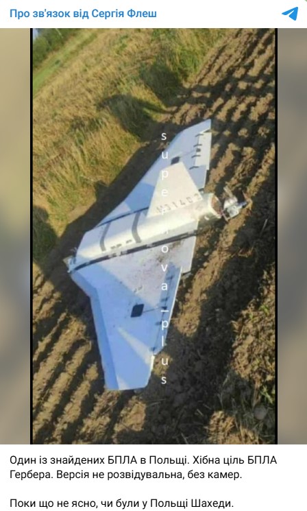 Были ли у дронов, атаковавших Польшу в ночь на 10 сентября, такие возможности — пока неизвестно, хотя эксперт по радиотехнологиям Сергей "Флэш" Бескрестнов выложил в соцсеть фотографию российского БПЛА, найденного в Польше. По его словам, это дрон "Гербера" и в данном случае не имел камеры и не был разведывательным.
