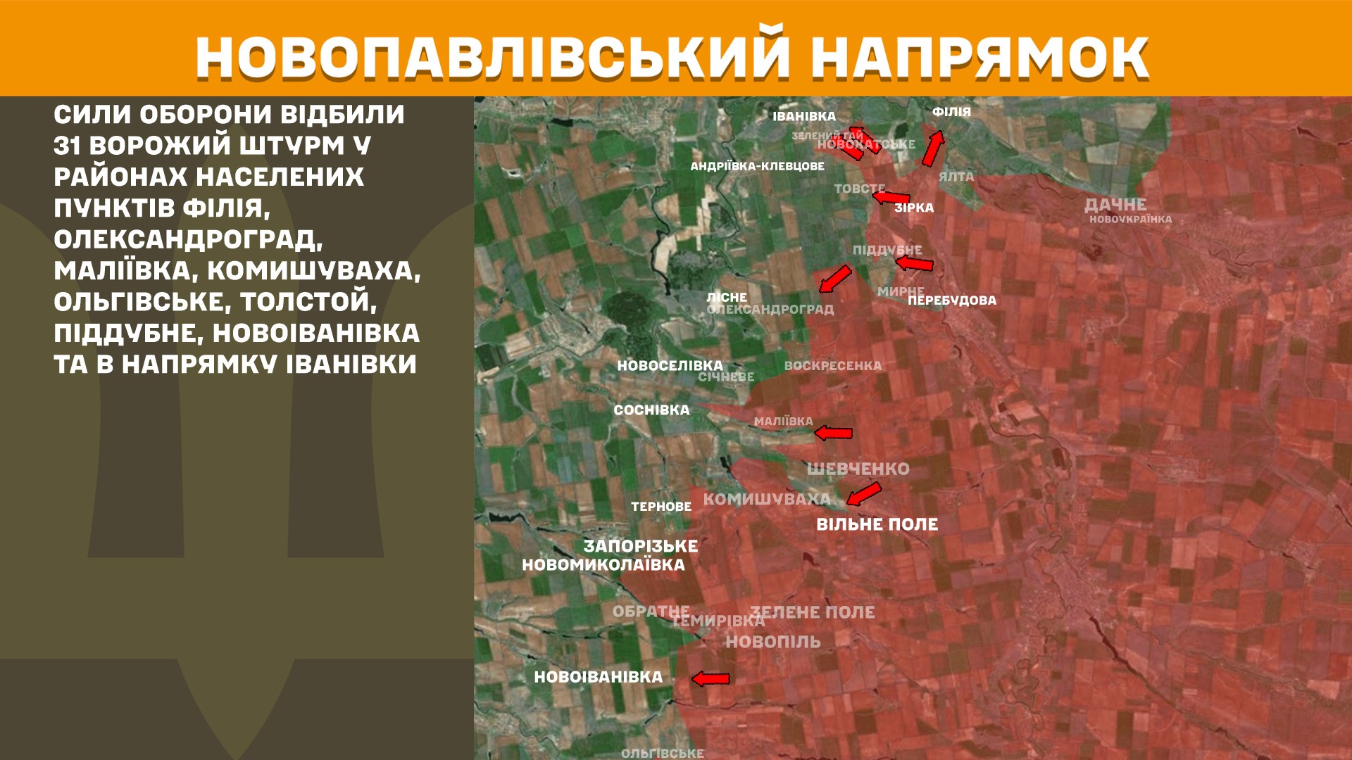 Между тем утром 11 сентября Генштаб ВСУ опубликовал на Facebook отчет о текущей ситуации, в частности, на Новопавловском направлении, к которому относят Сосновку. Командование не упомянуло о потере населенного пункта, но указывается, что насчитали 31 атаку ВС РФ: это же показывает карта. В канале ОСУВ "Днепр" село, о котором написал "Мучной", фигурировало в оперативном отчете по состоянию на 10 сентября. В заметке говорилось о том, что враг "сосредоточил атакующие усилия" возле девяти населенных пунктов. Среди них — Сосновка, а также Терновое и Новониколаевка из сообщения бойца.