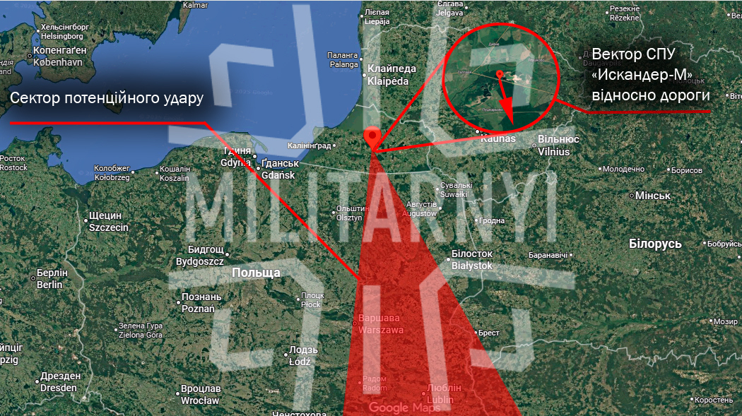 По информации сообщества "КиберБорошно", россияне снимают ОТРК "Искандер" на автодороге Е28, севернее населенного пункта Кудрявцево, Калининградская область. Пусковые установки развернуты севернее Кудрявцево — координаты 54.6451214, 21.3785666.