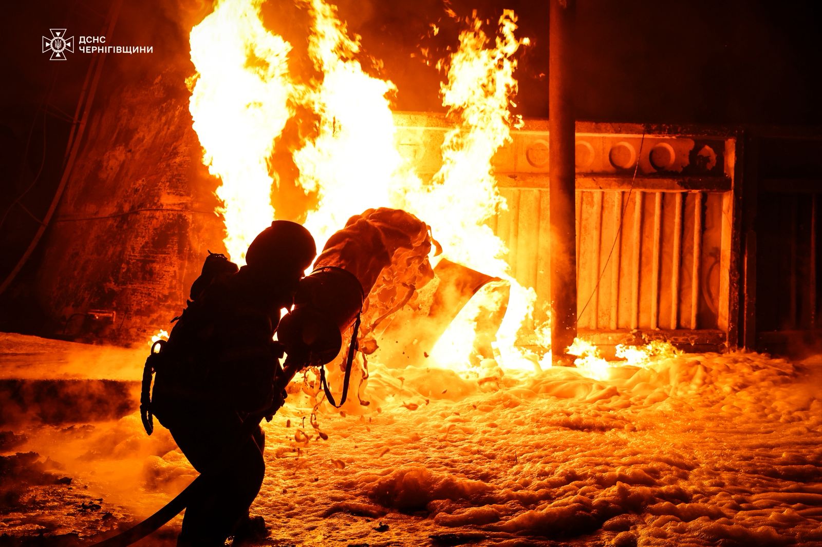 ВС РФ атаковали Нежин более 16 часов подряд: горела крупная нефтебаза, ранены спасатели (фото)