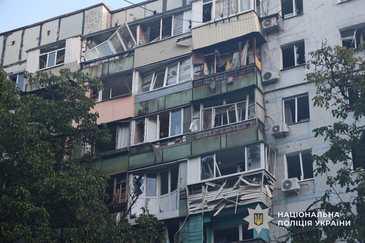 Во время массированной российской атаки в ночь на 20 сентября в Днепре пострадала многоэтажка | Фото: Национальная полиция