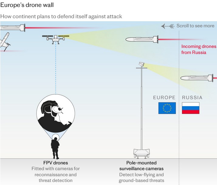 Договариваться о стене против провокаций РФ будут семь стран: Эстония, Латвия, Литва, Финляндия, Польша, Румыния и Болгария, а также Украина, которая имеет опыт борьбы с дронами. Впрочем, не ожидают Венгрии, поскольку она стала слишком пророссийской, уточнило The Telegraph. Сотрудница Центра анализа европейской политики Джессика Берлин сравнила "стену дронов" ЕС с "линией Мажино", также уточнив, что следует усилить помощь украинцам.