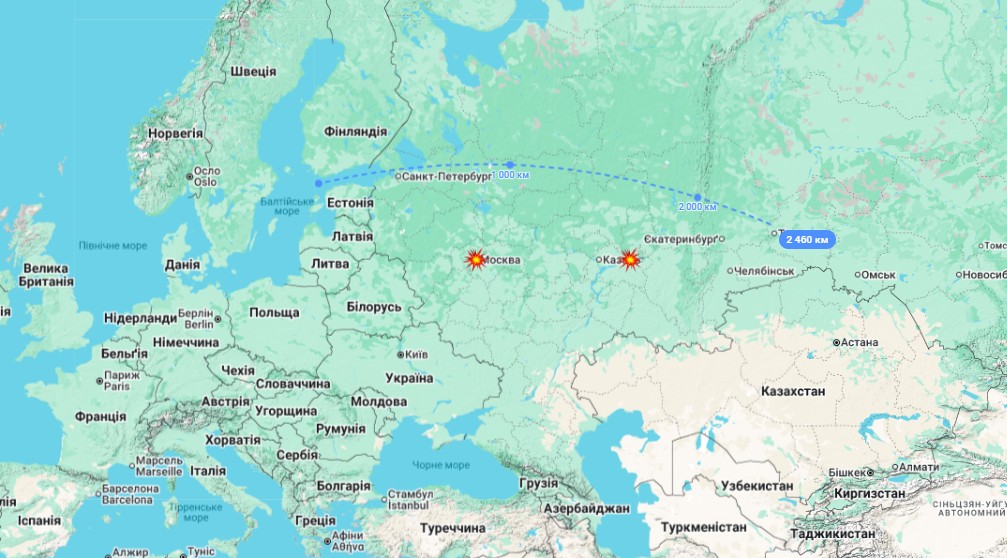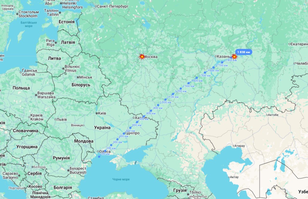 На Google maps можно обозначить, до какой точки в РФ достанет Tomahawk в зависимости от точки пуска и если ее не собьют средства ПВО над десятком российских регионов, которые она будет проходить. Если пуск произойдет из Балтийского моря, то средство поражения доберется до Москвы, но чтобы перелететь через Уральские горы придется применять Block V (Block IV "Tactical Tomahawk") на 2 400 км. Если Украина будет запускать ракету с Черного моря, то поразит цели и в Москве, и в Алабуге, где производятся "Шахеды", показывает карта. Если получит пусковую установку Typhon и произведет выстрел из района Львовской области или Волыни, то указанные объекты также в пределах досягаемости.