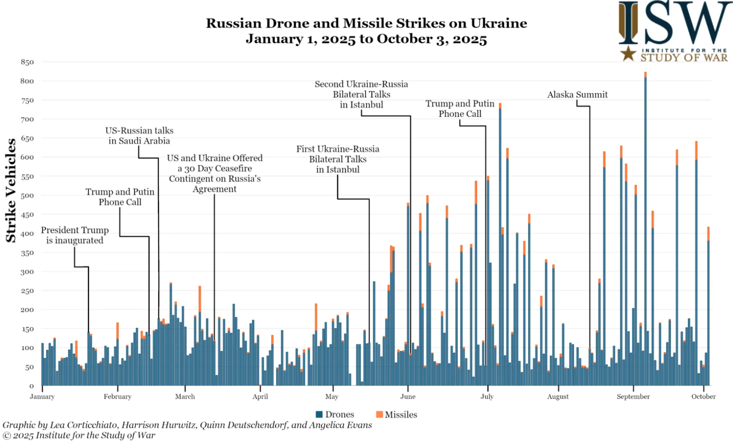 В ISW отметили, что в сентябре только в четырех ночных ударах россияне применили более 10 ракет. С конца августа 2025 года россияне наносили по одному массированному удару, содержащему более 40 ракет, примерно каждые две недели. По мнению аналитиков, это подчеркивает тенденцию в тактике оккупантов проводить несколько масштабных комбинированных ударов, перемежая их меньшими ударами беспилотниками.