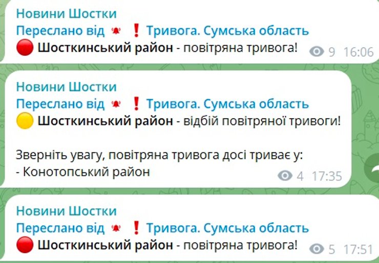 На момент написания материала в Шосткинском районе снова звучала воздушная тревога.