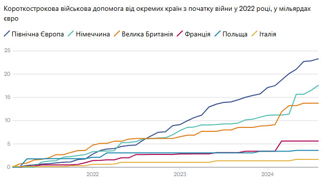 В то же время южные европейские страны — Франция, Испания и Италия — демонстрируют ограниченную активность. Их военная помощь остается незначительной, а политические приоритеты часто смещены на другие регионы, в частности Северную Африку.
