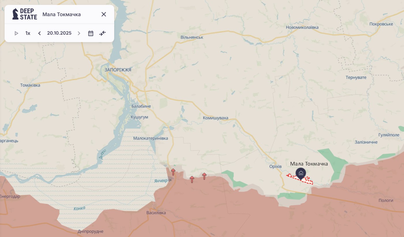 20 октября Вооруженные силы Российской Федерации атаковали позиции 118 отдельной механизированной бригады, которая держит оборону на Ореховском направлении возле Малой Токмачки. Бойцы отбили штурм, в котором участвовали 26 российских бронемашин.