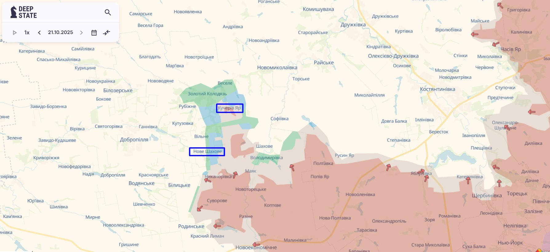 Покровское направление. Аналитики сообщили, что ВС РФ продвинулись рядом с селами Новоторецкое и Шахово. Оба населенных пункта — в зоне прорыва россиян под Добропольем, восточный фланг.