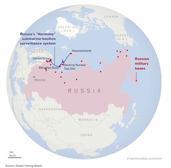 Таким образом РФ создала систему прослушивания. Задача, которую может выполнять "Гармония": отслеживает движение подводных лодок и кораблей НАТО, защищает российские ядерные объекты, передает данные в береговые командные пункты. Данные передаются в командный пункт в Мурманске.