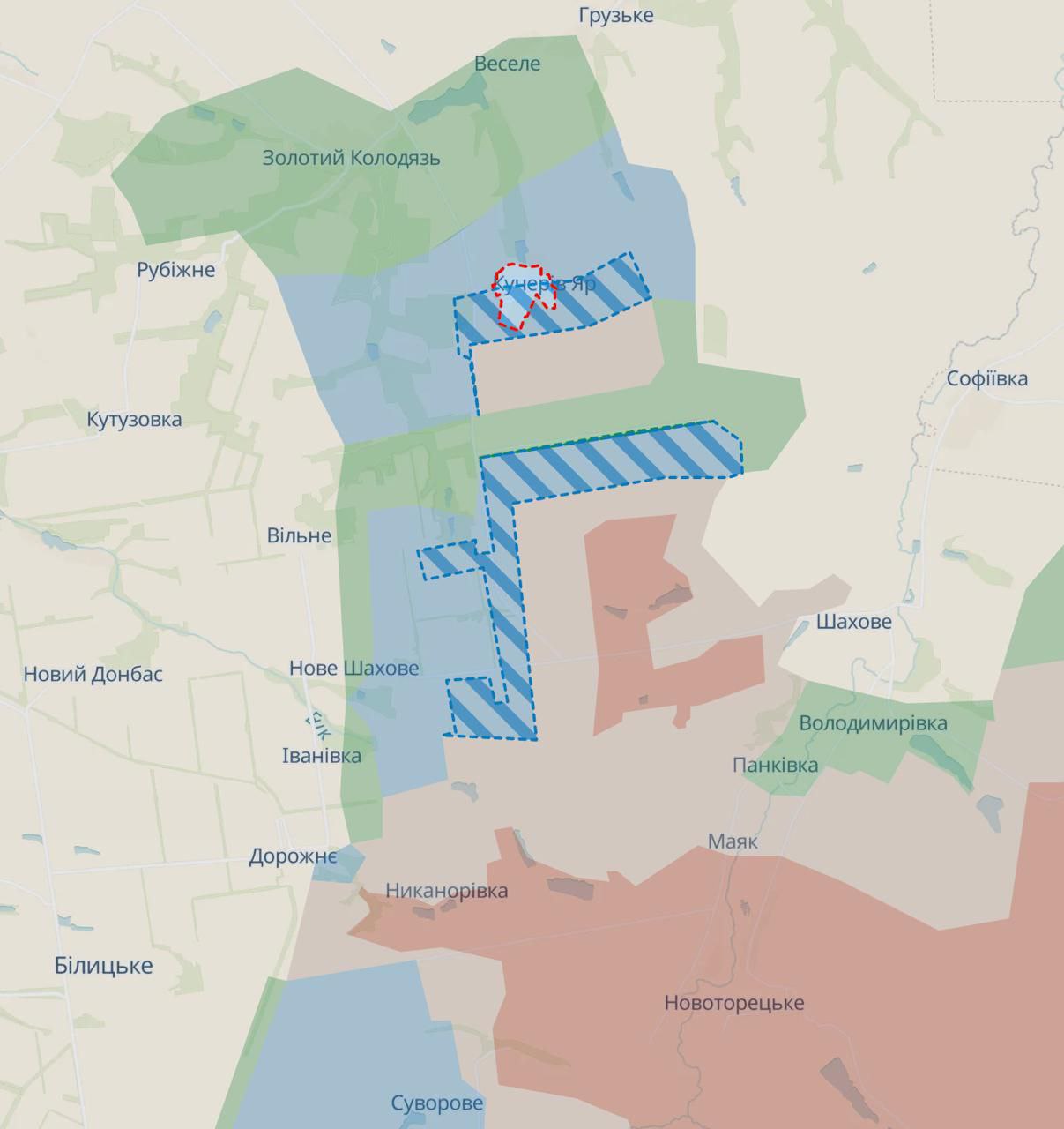 Кроме этого, по данным УНИАН, которое ссылается на Deep State, Вооруженные силы Украины освободили еще два населенных пункта на Добропольском выступе — Кучеров Яр и Затишок. Также украинские войска отбросили противника в районах Миканоровки, Нового Шахового и Федоровки.